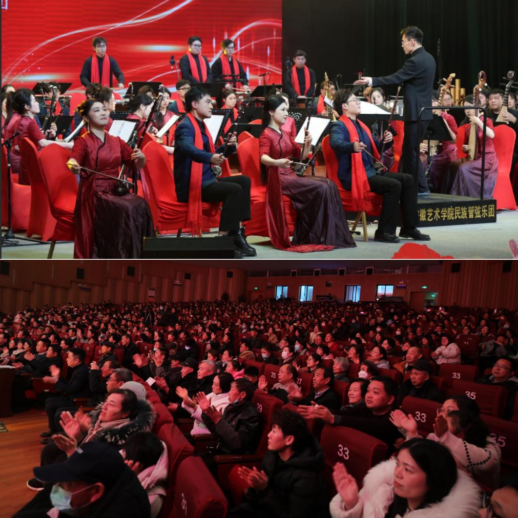本场音乐会旨在以高雅艺术丰富人民群众的文化生活,让优秀传统文化“可感可听”,融入大众心田。我校民族管弦乐团全体师生以饱满的热情、精湛的技艺和深情的演绎,圆满完成了此次演出任务,不仅展现了学院在民族音乐教育与艺术实践方面的丰硕成果,更履行了高校服务社会、以文化人的重要使命。我们荣幸能与宿州各界朋友在悠扬的旋律中共启新岁,共享华年,并将继续努力,为传承与发展中国民族音乐、繁荣地方文化事业贡献力量。(撰稿:朱泽军 摄影:许鹏举 初审:张中灿 复审:张祖顺 终审:李卫国 )