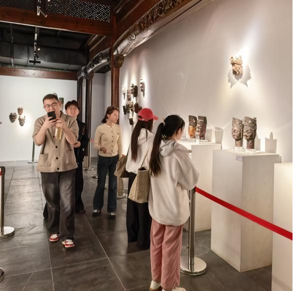 次日,师生前往池州市秀山门博物馆参观学习。同学们近距离参观馆藏文物,系统了解池州地域历史文化与民俗传承,并现场观看非遗傩戏表演。古朴的唱腔、独特的面具、富有地域特色的表演形式,让大家直观感受到池州民间艺术的魅力与非遗文化的深厚内涵。同学们认真记录旋律特点与艺术风格,为音乐创作收集了鲜活、珍贵的民间音乐素材。