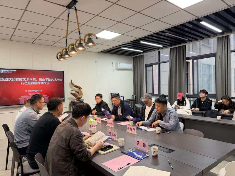 池州学院艺术与教育学院副院长路广宏、黄山学院艺术学院副院长史一丰、池州学院艺术与教育学院党委副书记李俊明、池州学院艺术与教育学院音乐系主任丁绪山同安徽艺术学院孙四化副教授及随行师生进行座谈交流。