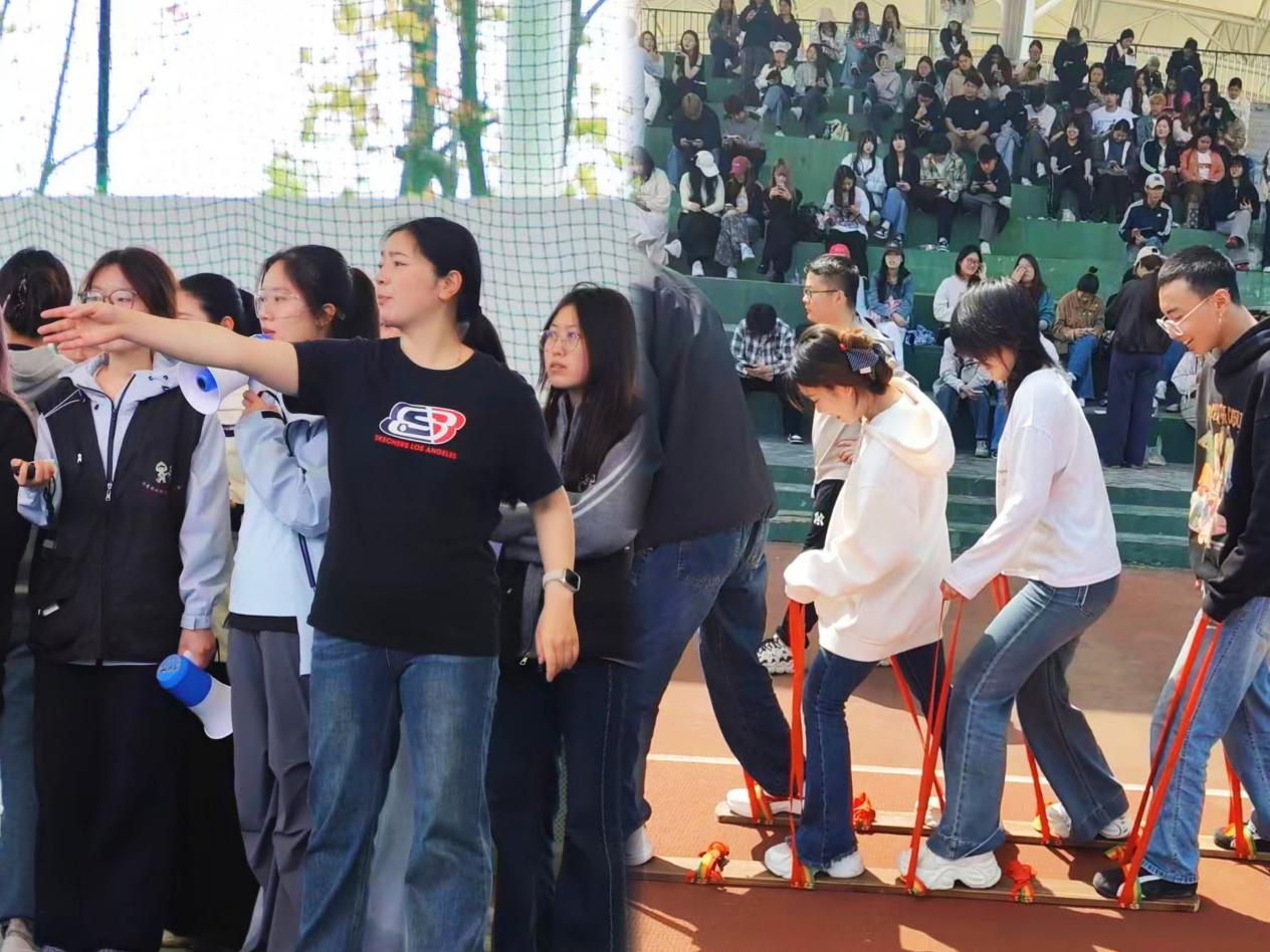 教工组同样积极参与,热情高涨。老师们组队参加了螃蟹接力运球、2分钟跳大绳等多个趣味项目,与同学们同场竞技、共享运动乐趣。学院领导和全体辅导员更是全天候在操场陪同,为参赛师生加油鼓劲、协调保障,成为赛场外最温暖的后盾。