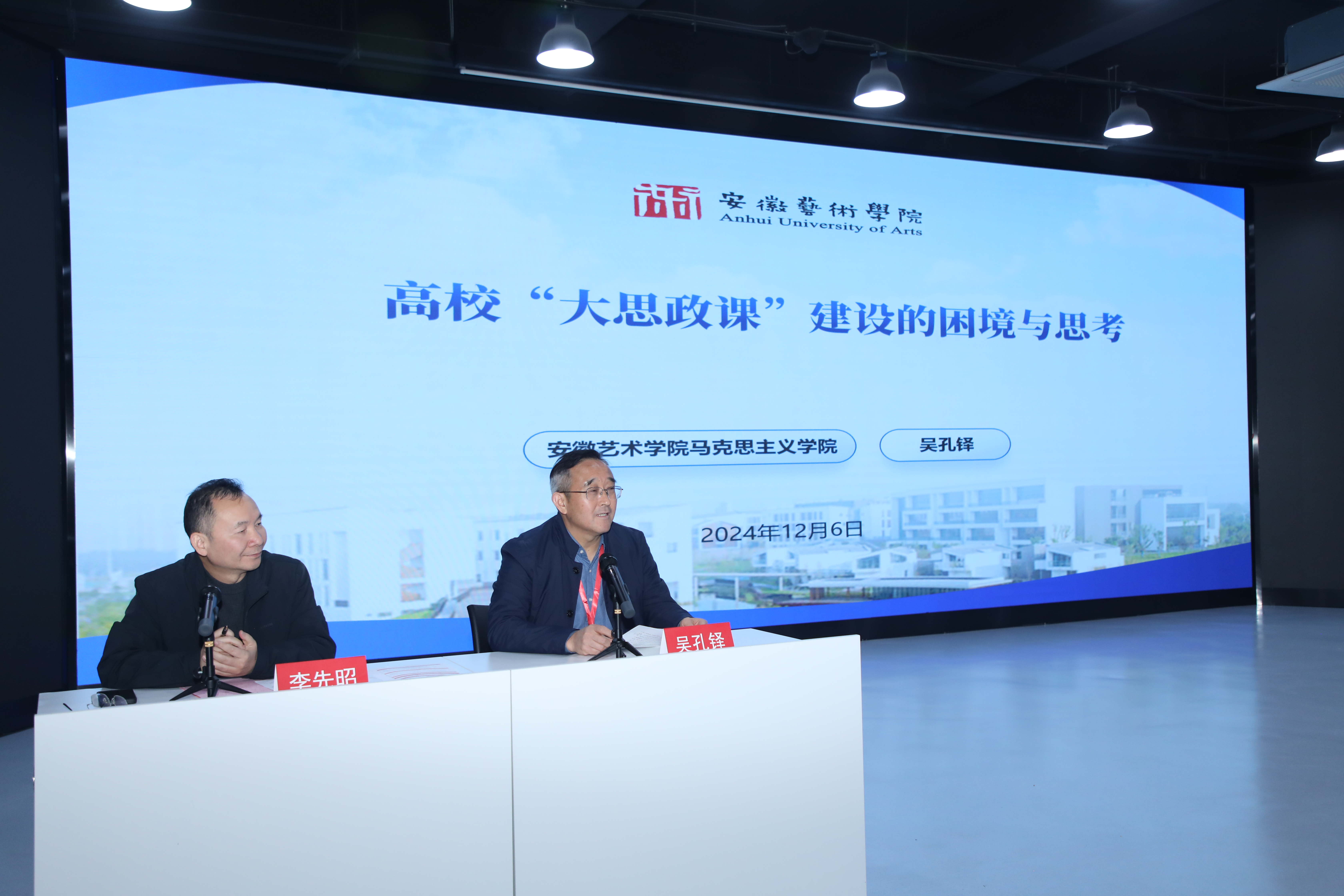 “圆桌报告·对话交流”环节,参会代表从其学科属性和专业特点出发,围绕习近平总书记文艺思想、文艺工作者的使命任务、大思政课建设等进行交流,分享各校思政课的特色经验做法。吴孔铎作题为“高校‘大思政课’建设困境及思考”的发言,展示了我校马克思主义学院建设“大思政课”的思考、成果和经验。(撰稿:金超 摄影:会议组委会 初核:吴孔铎 编辑:杨瑞铭 审定:尹广富)