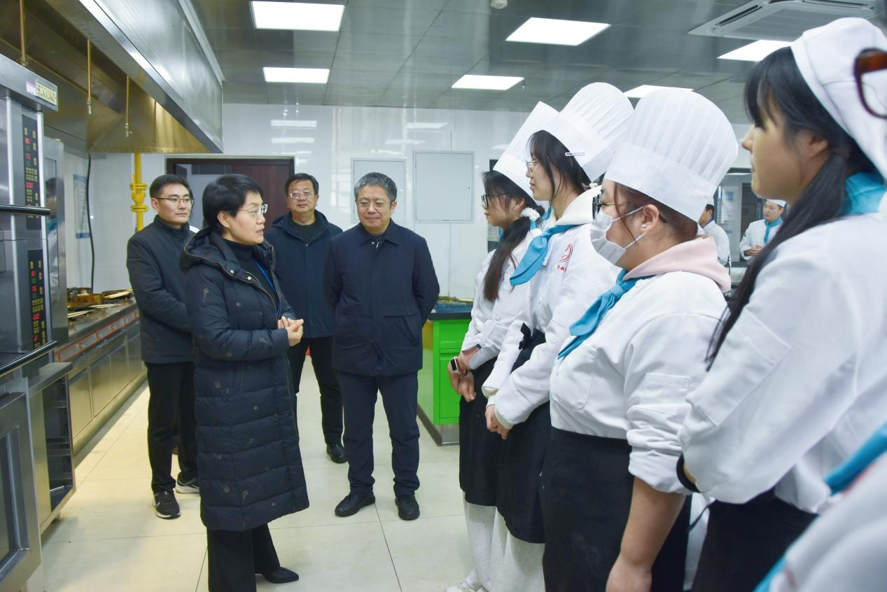在旅游学院,韩军实地察看了烹饪综合实训平台、茶艺实验室、西餐厅实训室等教学场所,深入了解实践教学与行业需求对接情况。她与烹饪专业学生亲切交流,勉励同学们珍惜实践机会,既要深耕传统文化知识,又要掌握现代旅游策划等专业技能,努力成长为文旅融合发展的复合型人才。她强调,党的二十届四中全会明确提出“扎实推进文化强国、旅游强国建设,推进文旅深度融合,大力发展文化旅游业,以文化赋能经济社会发展”的战略部署,为新时代旅游产业高质量发展指明了方向、提供了遵循。旅游学院要紧密围绕全会部署要求,立足区域文旅资源优势,深度挖掘徽州特色旅游资源,着力培养复合型高素质人才,推动文旅产业与乡村振兴、城市发展深度融合,让全会精神转化为服务地方文旅经济高质量发展的实际成效。
