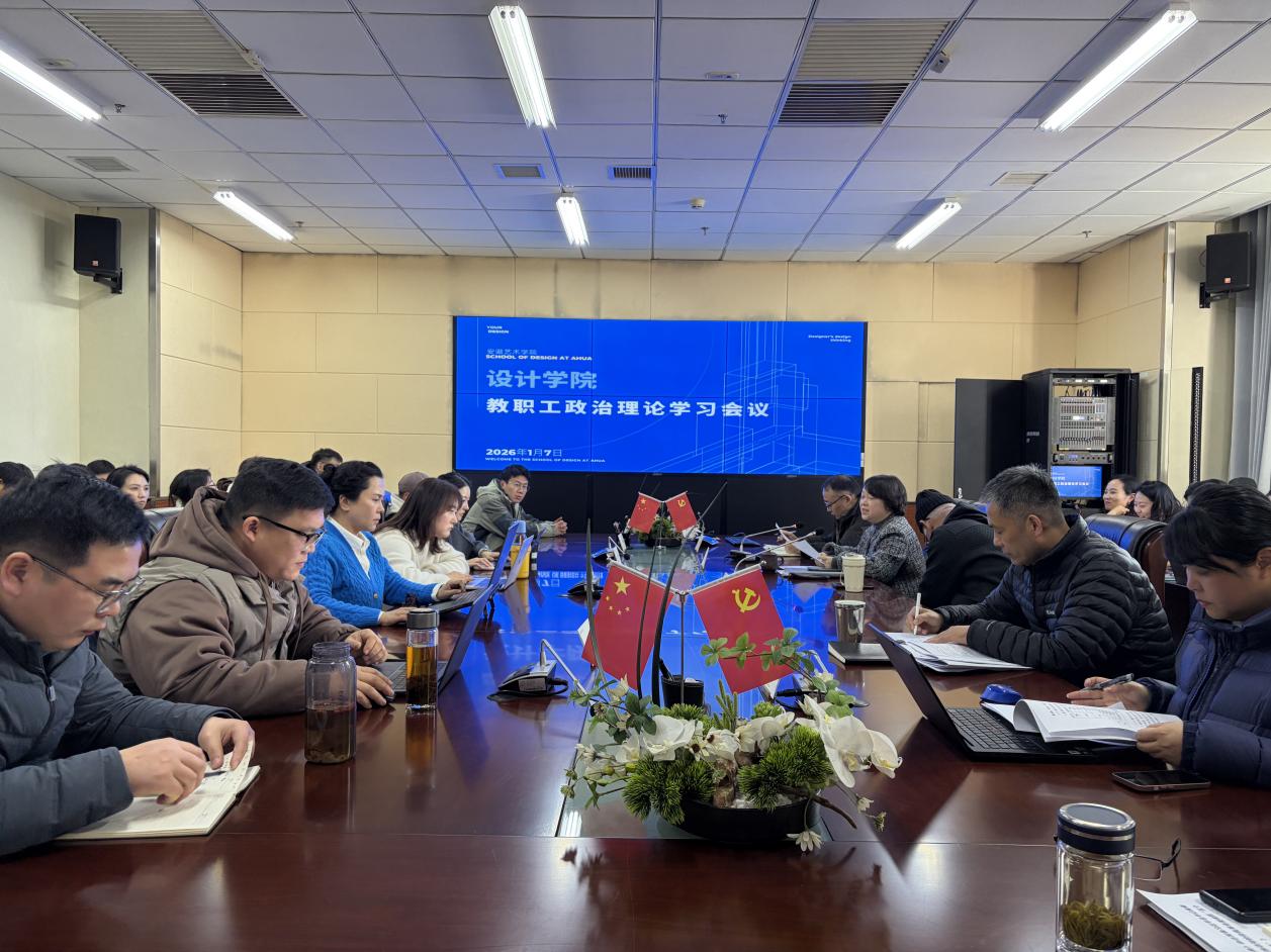 1月7日,设计学院举行期末教职工政治理论学习暨教学工作例会。学院顾问、南京艺术学院原院长邬烈炎教授,学院党总支书记俞璋凌,党总支副书记夏守军,副院长撒后余,各教研室负责人及全体教职工参加会议。会议由俞璋凌主持。